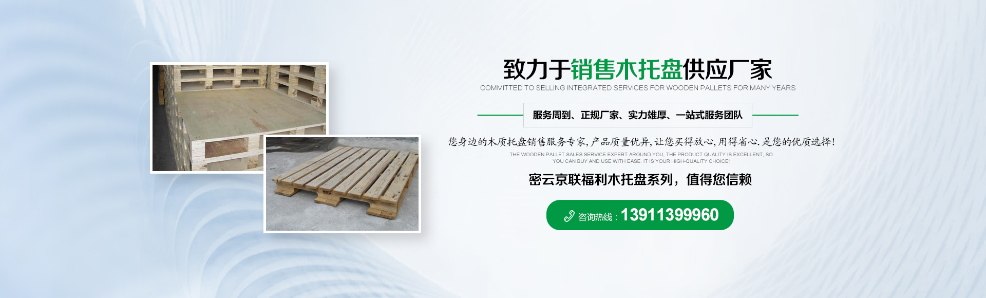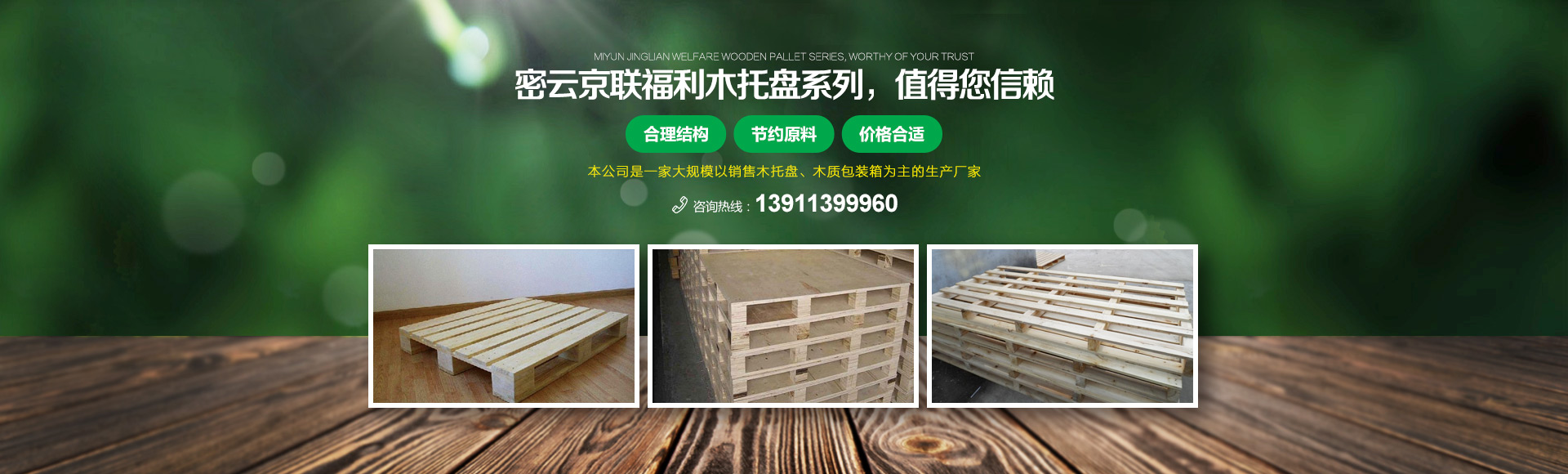 北京京聯(lián)國順木制品有限公司 (原北京市密云縣京聯(lián)福利木制品廠)成立于1993年,位于北京市密云縣西田各莊鎮(zhèn)蒼頭村,占地約5000平米。我公司工廠是一家大規(guī)模以銷售木托盤為主的生產(chǎn)廠家。本工廠是一家直接采購原木,按客戶要求生產(chǎn)規(guī)格尺寸的托盤,我公司工廠位于河北省承德市有著木材加工點(diǎn),可以做到,從山上的木頭下山到客戶手中的托盤都是一手貨,減少了中間商的費(fèi)用,所以我公司售出的產(chǎn)品對北京這個龐大的市場來說在同樣的規(guī)格尺寸的托盤來說價格比較占優(yōu)勢。